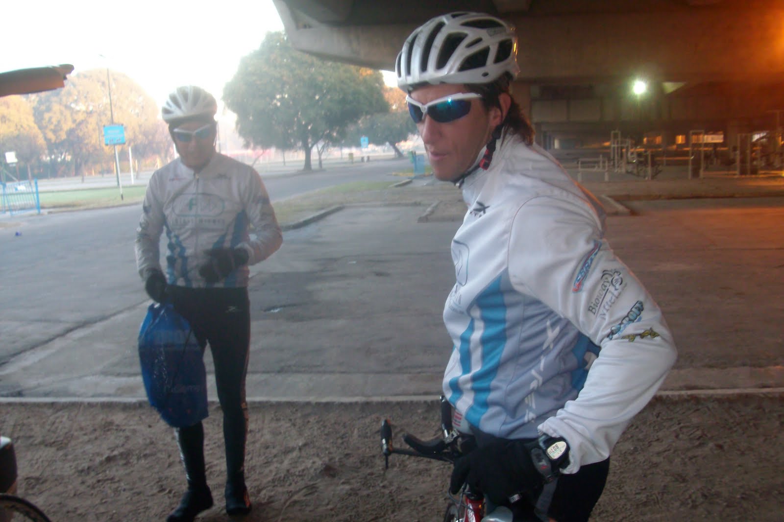 6:30 arriba, todas caras largas, caras serias cada cual en su mundo hasta parecia que no nos conociamos desayuno, para algunos bien pesado para otros livianito mp3 volumen al maximo un rato de punk rock y un rato de esa musica que te hace acordar de todo lo que te hace bien, concentracion expectativas muy pocas palabras, asi llegamos al gran parque cerrado donde chequeamos nuestras bicis pasamos por marcacion y al agua entrada en calor .